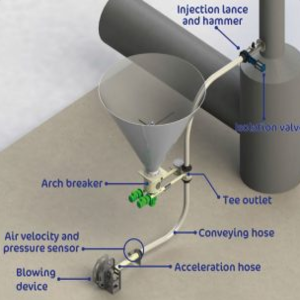 with a very high accuracy for industrial applications. This installation allows weight dosing from a buffer hopper placed under or near the silo to the injection point. This mechanism can also be applied to the