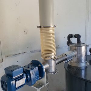 The injector screw transfers or injects dry chemicals into a sludge mixer, slurry tank or gas stream while isolating moisture, heat and condensation from the dry chemical. Injector screws are used in place of isolation devices such as pinch valves, slide